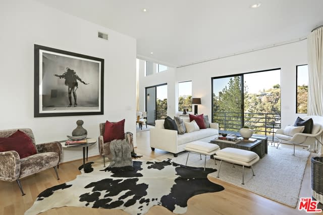 Outstanding modern architectural w/design additions styled by the lead architect for the world famous New Berlin Museum. Huge light & airy rooms accented with cubic & volume height scale framed by sweeping views. Sleek newer kitchen w/top of the line chef's appliances & wine storage. Movie theatre, loft like master suite w/a highly crafted & dramatic floating soaking bath & over size shower. Sleek guest bath w/rain shower. Open air office. Decks, terraces, koi pond, stream, croquet area & beautifully landscaped gardens, park like grounds & outdoor areas complete this tour de force. Brilliant views of Hollywoodland, Wolfs Lair, the sign & the canyon. An amazing opportunity.