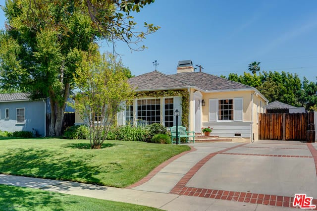 Located south of Moorpark in prime Studio City on a tree lined street in Footbridge Square, this timeless circa 1939 cottage has beautiful sunlit rooms with charm and character to spare! Living room with fireplace leads to formal dining room, and kitchen opening to family room. Original hardwood floors, two sided fireplace, built-ins and moldings reflect the classic charm of the period. Stunning master with soaring vaulted ceiling and window seat. Master and family room open with French doors to very private, lush hedged back yard with swing set and two separate patio areas. Gorgeous landscaped yard includes 4 citrus trees, camellia, roses and jasmine. Separate detached guest suite with 3/4 bath perfect for studio, office or guests. Award winning Carpenter School. Former home of "Supergirl" actress Helen Slater.