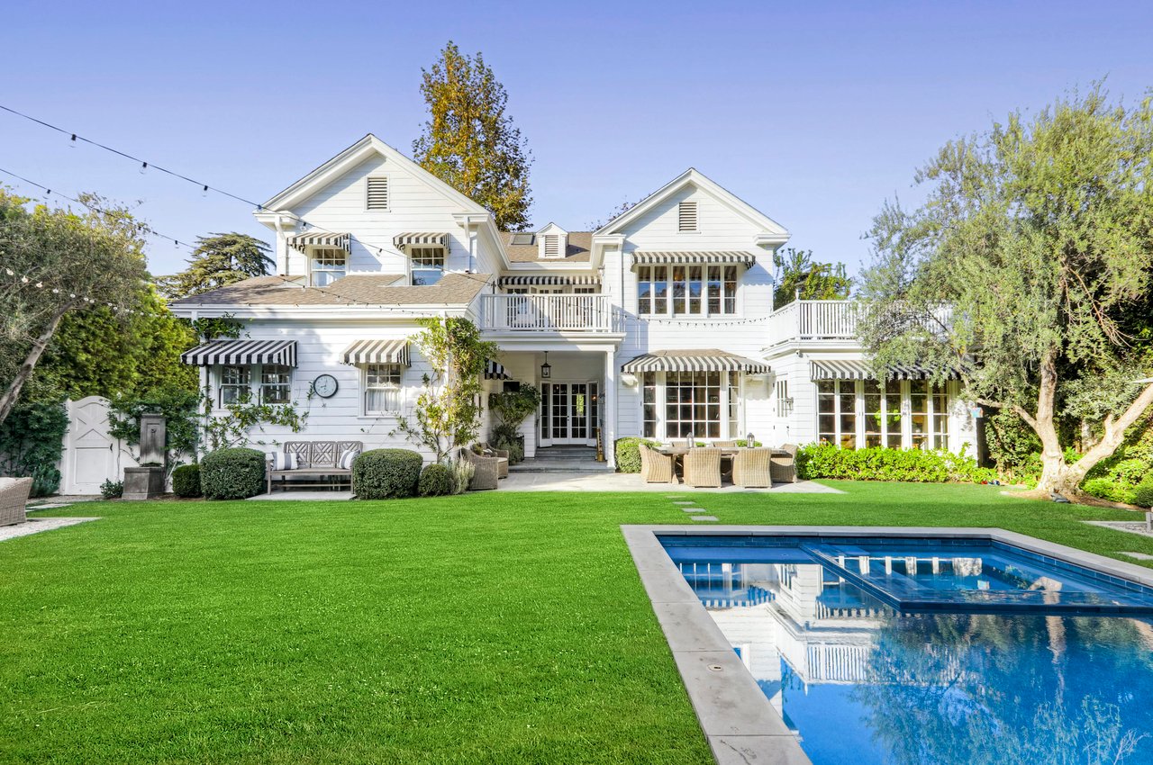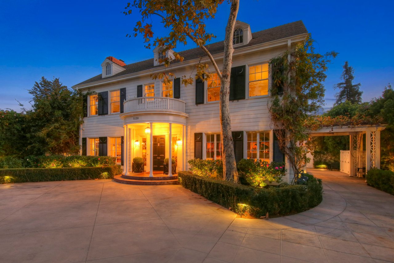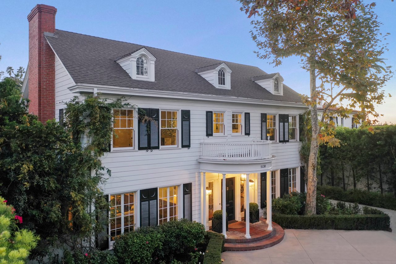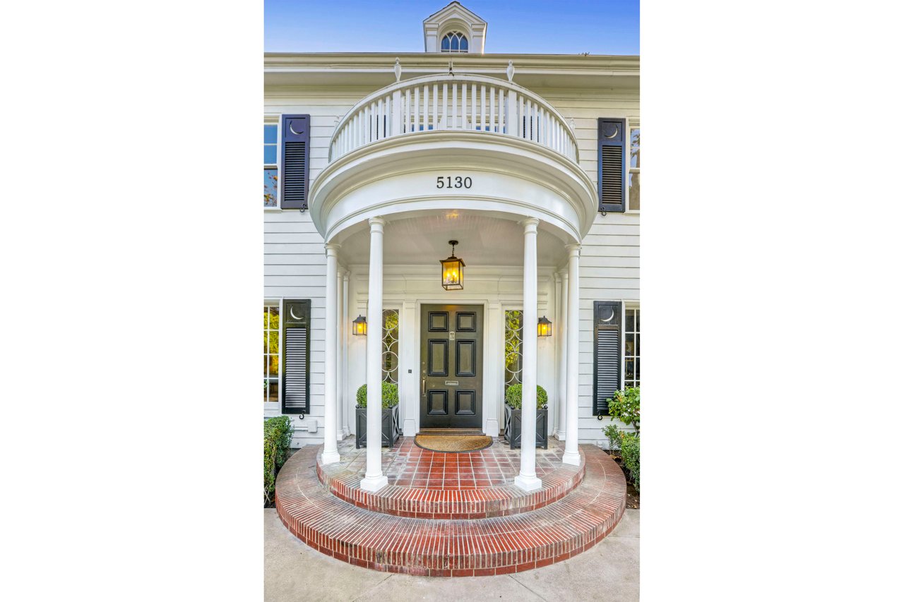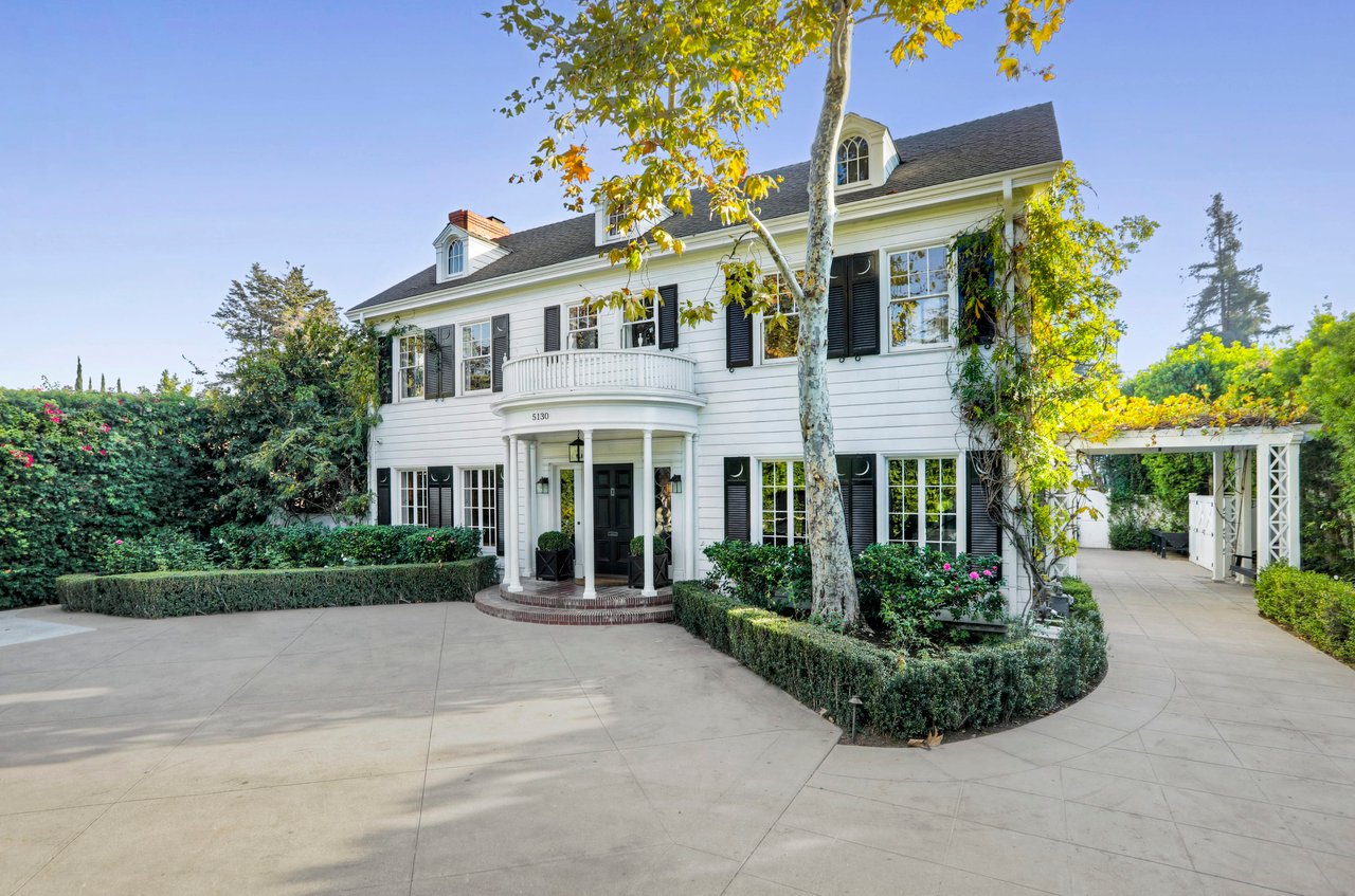 Marshall Wilkinson AIA, architect to the stars. Shrouded by tall hedges behind gates for privacy adjacent to Laughlin Park, this 1920's mini-compound is one of the finest examples of unspoiled Colonial architecture: with details, craftsmanship and a soul that you will only find in a vintage home. Motor court leads to portico entry and massive center hall with grand staircase flooded with sunlight. Chic and classic stylings elevate living room with fireplace, formal dining room and sun/TV room. Updated chef's eat-in kitchen leads to breakfast room, laundry room and full maid's suite. Upstairs are 4 more bedrooms including gorgeous primary suite--and on the third level is a bonus suite. Garage is converted to a stunning family entertainment center plus full guest apartment upstairs. Newer pool and yard with mature landscape are totally private. An experience that lights the spirit and soothes the senses--creating an unforgettable atmosphere of blissful country life in the city.