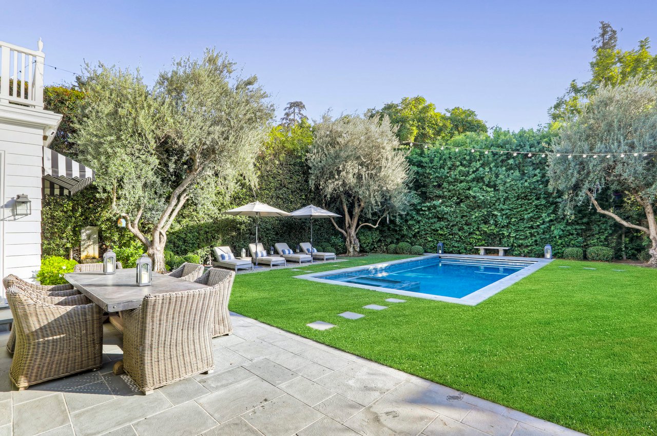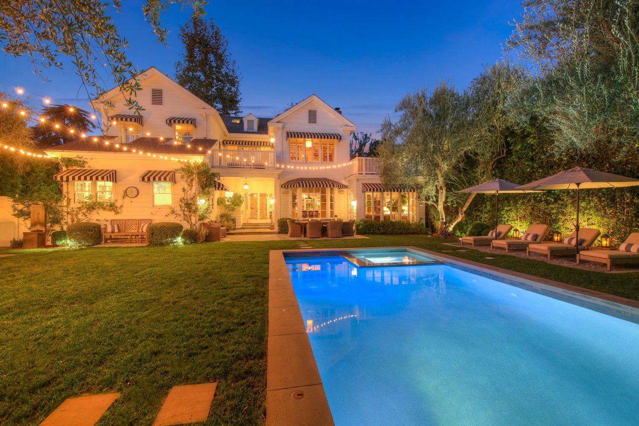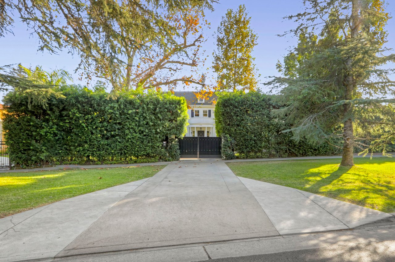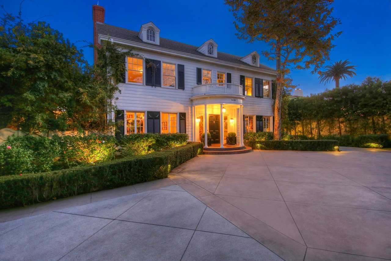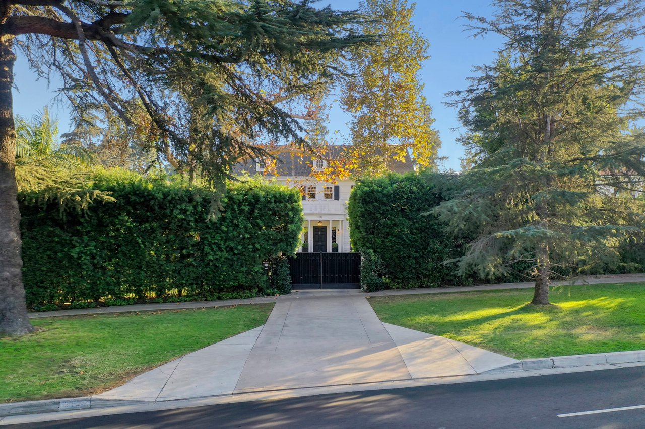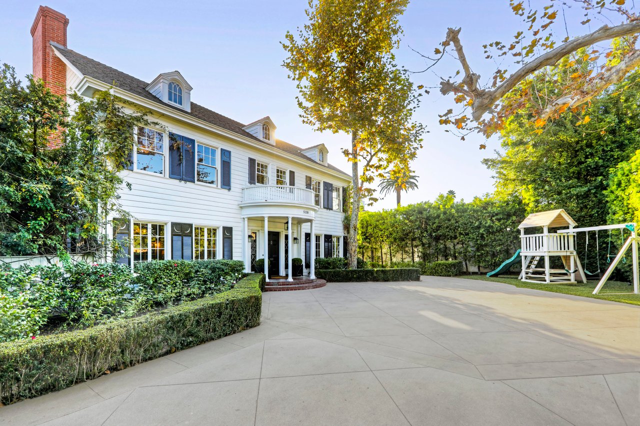 Marshall Wilkinson AIA, architect to the stars. Shrouded by tall hedges behind gates for privacy adjacent to Laughlin Park, this 1920's mini-compound is one of the finest examples of unspoiled Colonial architecture: with details, craftsmanship and a soul that you will only find in a vintage home. Motor court leads to portico entry and massive center hall with grand staircase flooded with sunlight. Chic and classic stylings elevate living room with fireplace, formal dining room and sun/TV room. Updated chef's eat-in kitchen leads to breakfast room, laundry room and full maid's suite. Upstairs are 4 more bedrooms including gorgeous primary suite--and on the third level is a bonus suite. Garage is converted to a stunning family entertainment center plus full guest apartment upstairs. Newer pool and yard with mature landscape are totally private. An experience that lights the spirit and soothes the senses--creating an unforgettable atmosphere of blissful country life in the city.