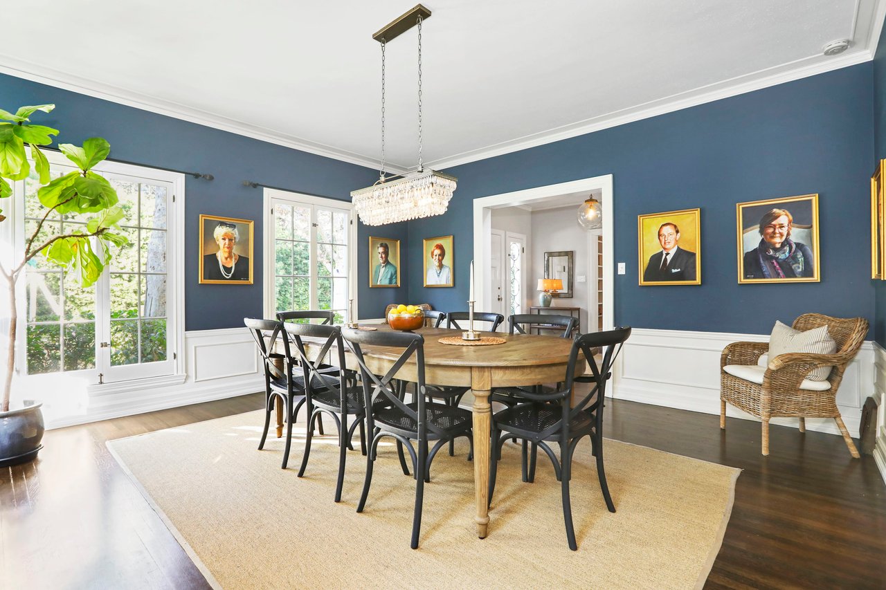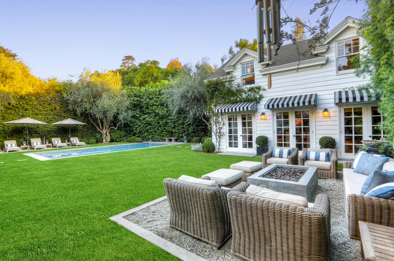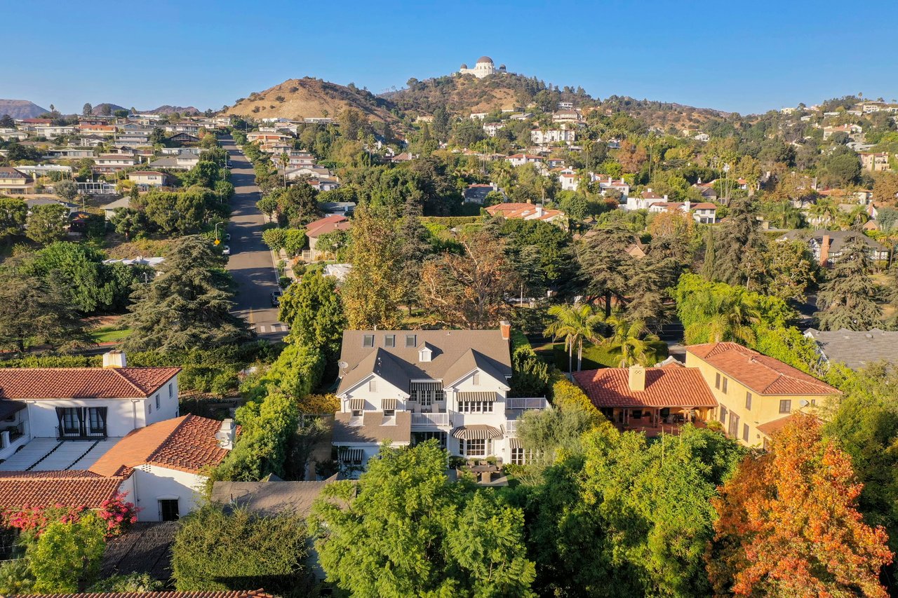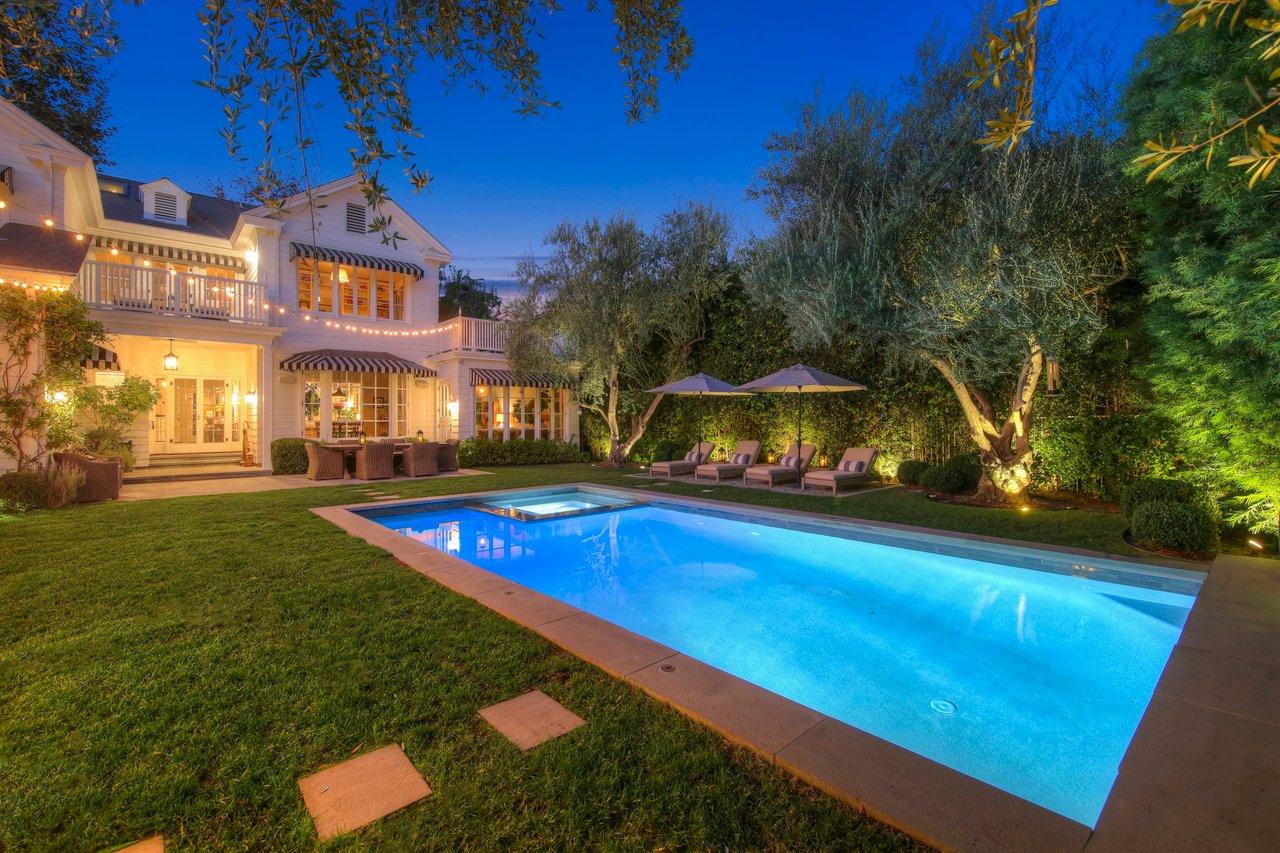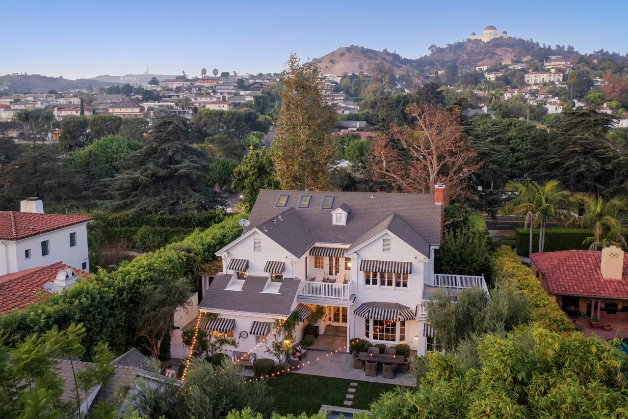 Marshall Wilkinson AIA, architect to the stars. Shrouded by tall hedges behind gates for privacy adjacent to Laughlin Park, this 1920's mini-compound is one of the finest examples of unspoiled Colonial architecture: with details, craftsmanship and a soul that you will only find in a vintage home. Motor court leads to portico entry and massive center hall with grand staircase flooded with sunlight. Chic and classic stylings elevate living room with fireplace, formal dining room and sun/TV room. Updated chef's eat-in kitchen leads to breakfast room, laundry room and full maid's suite. Upstairs are 4 more bedrooms including gorgeous primary suite--and on the third level is a bonus suite. Garage is converted to a stunning family entertainment center plus full guest apartment upstairs. Newer pool and yard with mature landscape are totally private. An experience that lights the spirit and soothes the senses--creating an unforgettable atmosphere of blissful country life in the city.