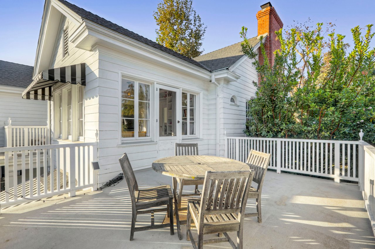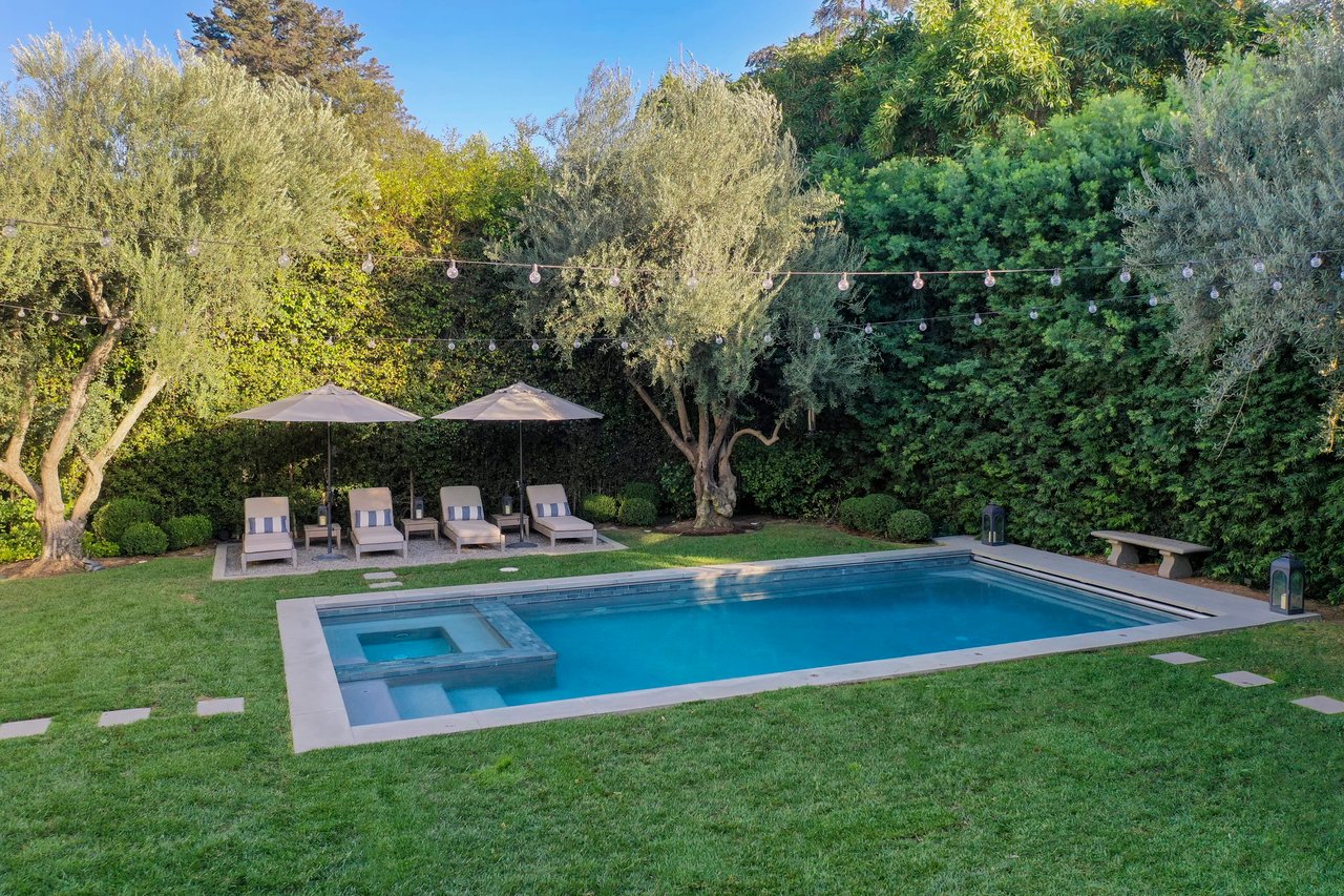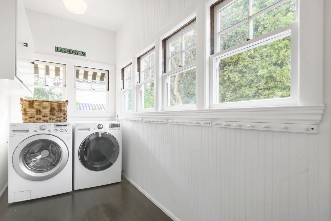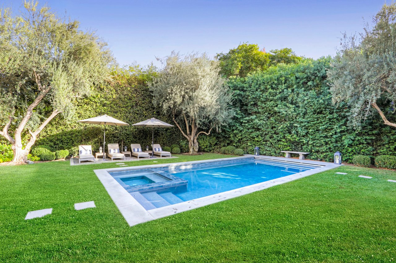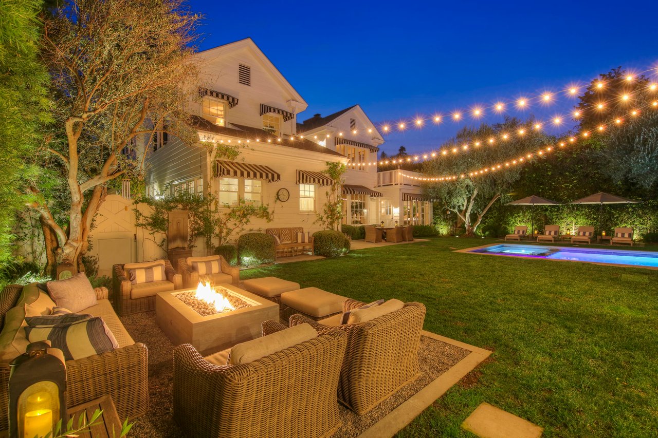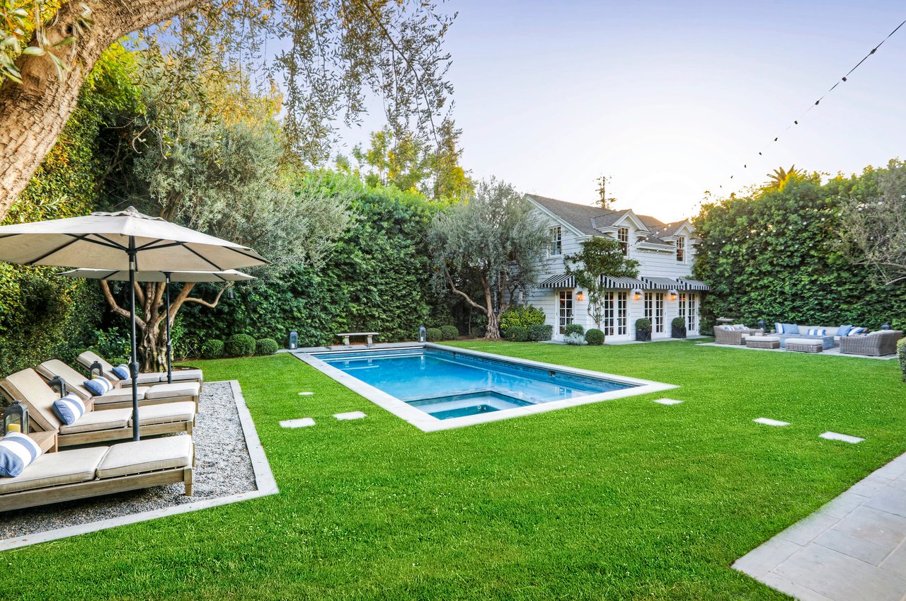 Marshall Wilkinson AIA, architect to the stars. Shrouded by tall hedges behind gates for privacy adjacent to Laughlin Park, this 1920's mini-compound is one of the finest examples of unspoiled Colonial architecture: with details, craftsmanship and a soul that you will only find in a vintage home. Motor court leads to portico entry and massive center hall with grand staircase flooded with sunlight. Chic and classic stylings elevate living room with fireplace, formal dining room and sun/TV room. Updated chef's eat-in kitchen leads to breakfast room, laundry room and full maid's suite. Upstairs are 4 more bedrooms including gorgeous primary suite--and on the third level is a bonus suite. Garage is converted to a stunning family entertainment center plus full guest apartment upstairs. Newer pool and yard with mature landscape are totally private. An experience that lights the spirit and soothes the senses--creating an unforgettable atmosphere of blissful country life in the city.