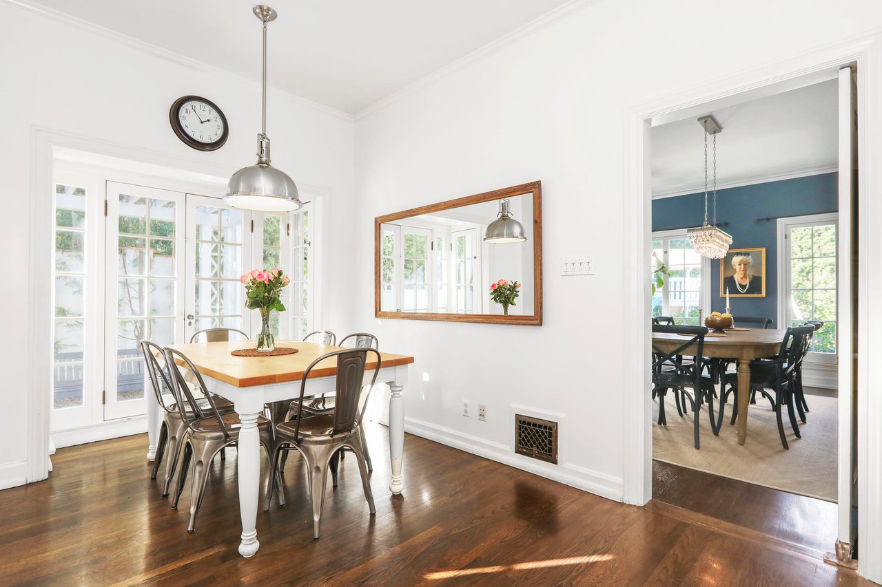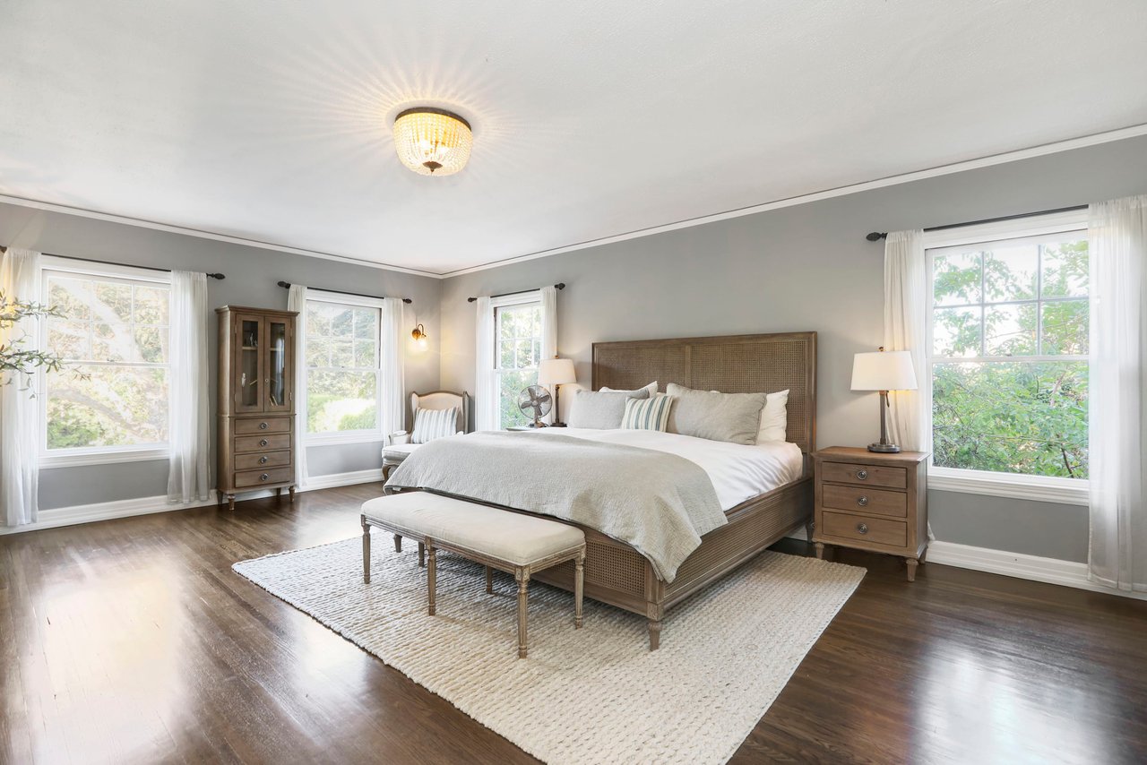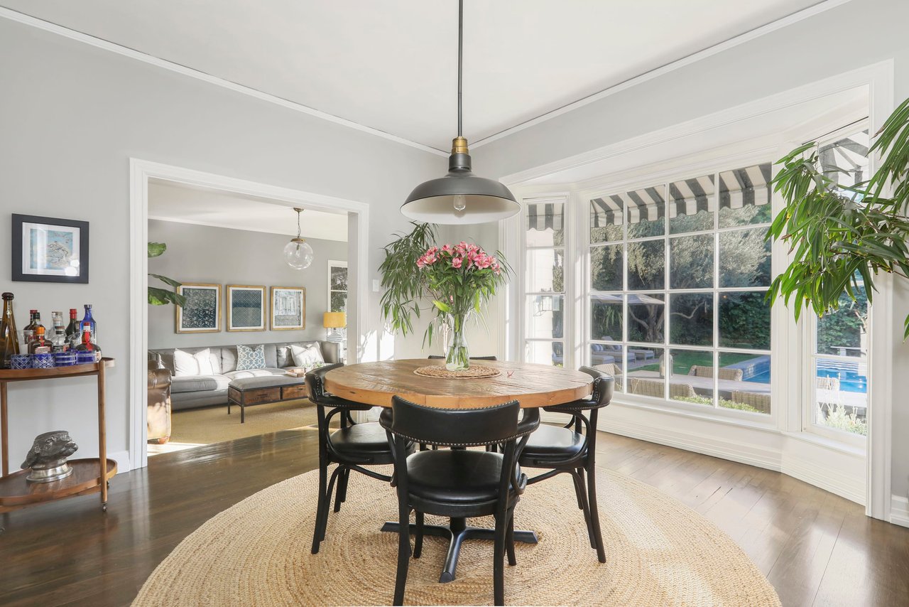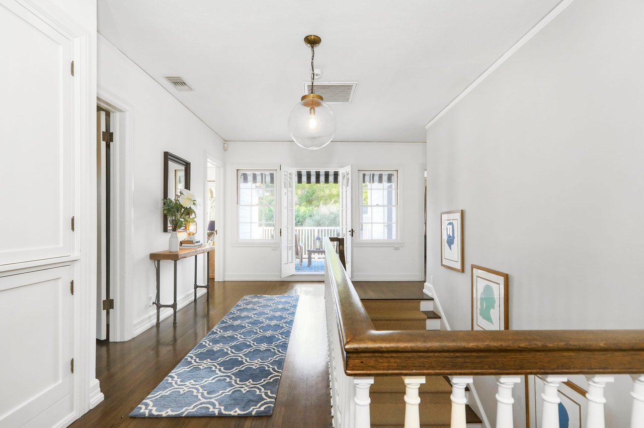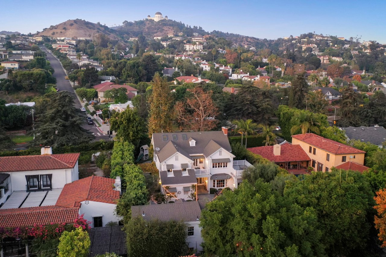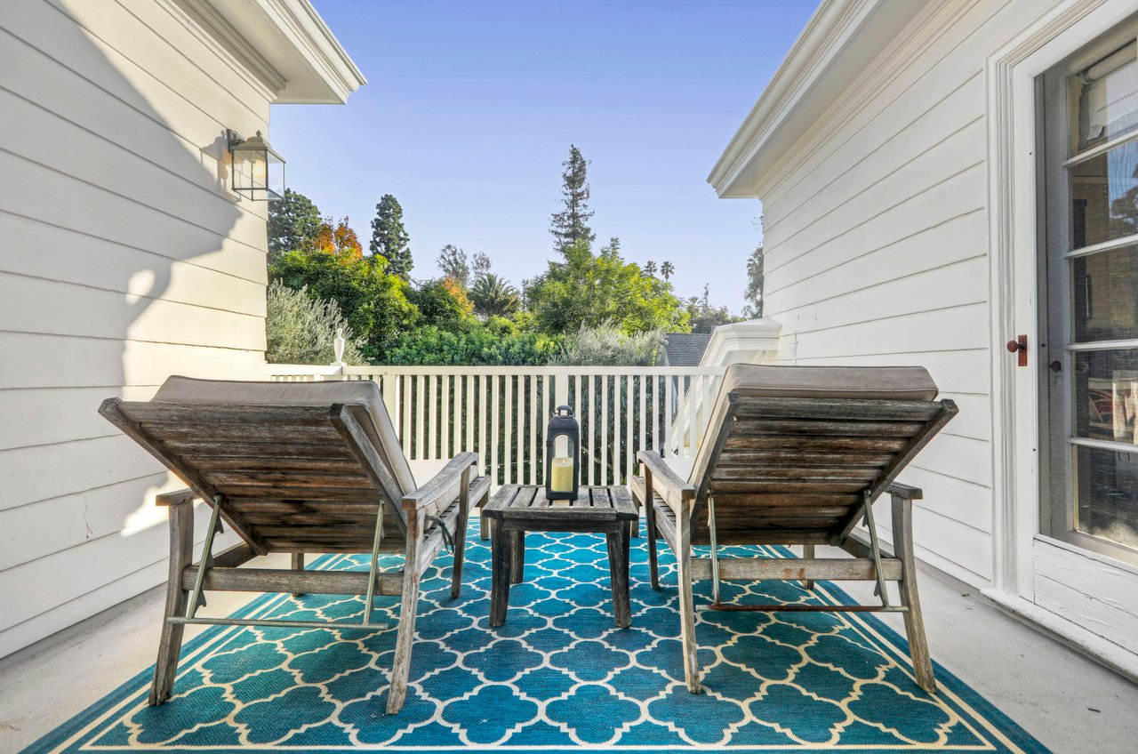 Marshall Wilkinson AIA, architect to the stars. Shrouded by tall hedges behind gates for privacy adjacent to Laughlin Park, this 1920's mini-compound is one of the finest examples of unspoiled Colonial architecture: with details, craftsmanship and a soul that you will only find in a vintage home. Motor court leads to portico entry and massive center hall with grand staircase flooded with sunlight. Chic and classic stylings elevate living room with fireplace, formal dining room and sun/TV room. Updated chef's eat-in kitchen leads to breakfast room, laundry room and full maid's suite. Upstairs are 4 more bedrooms including gorgeous primary suite--and on the third level is a bonus suite. Garage is converted to a stunning family entertainment center plus full guest apartment upstairs. Newer pool and yard with mature landscape are totally private. An experience that lights the spirit and soothes the senses--creating an unforgettable atmosphere of blissful country life in the city.