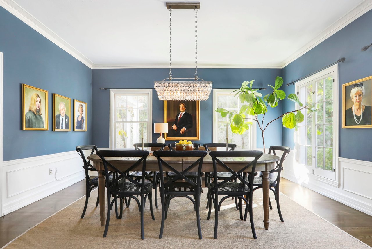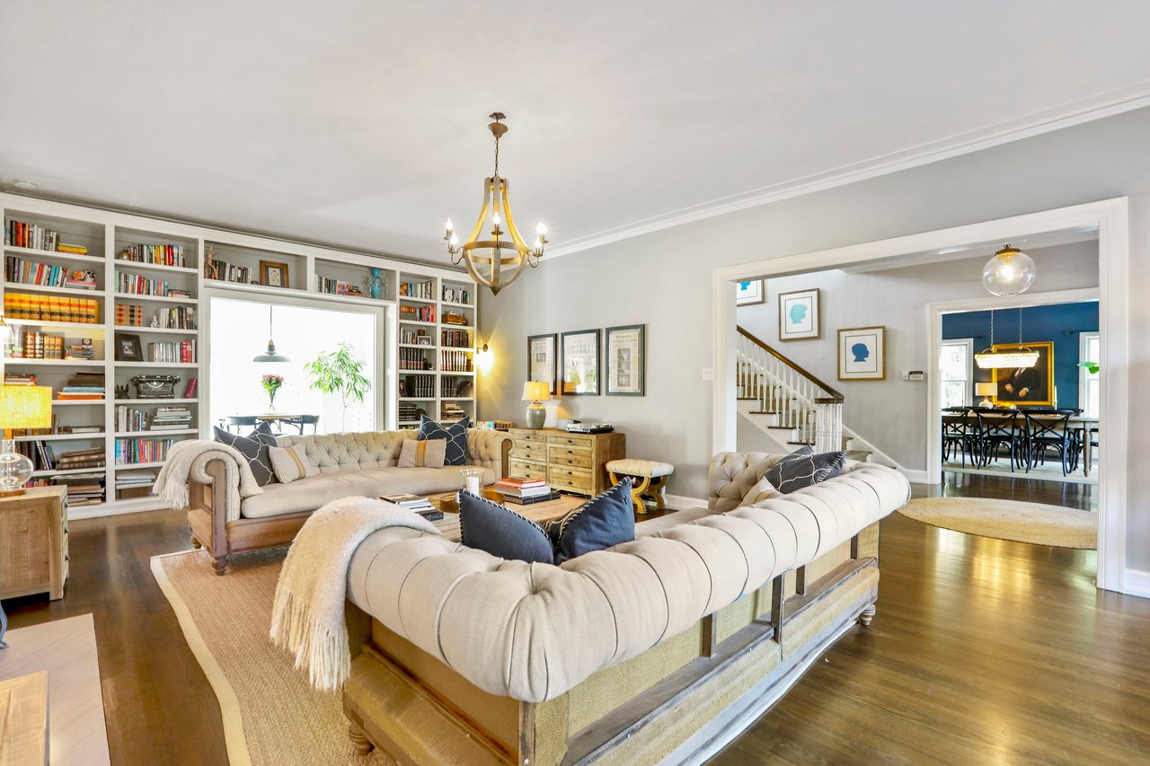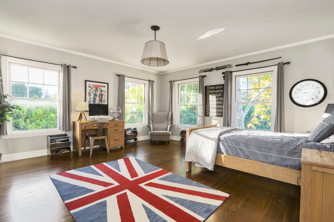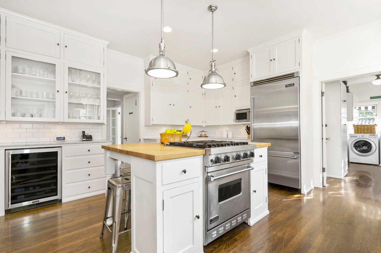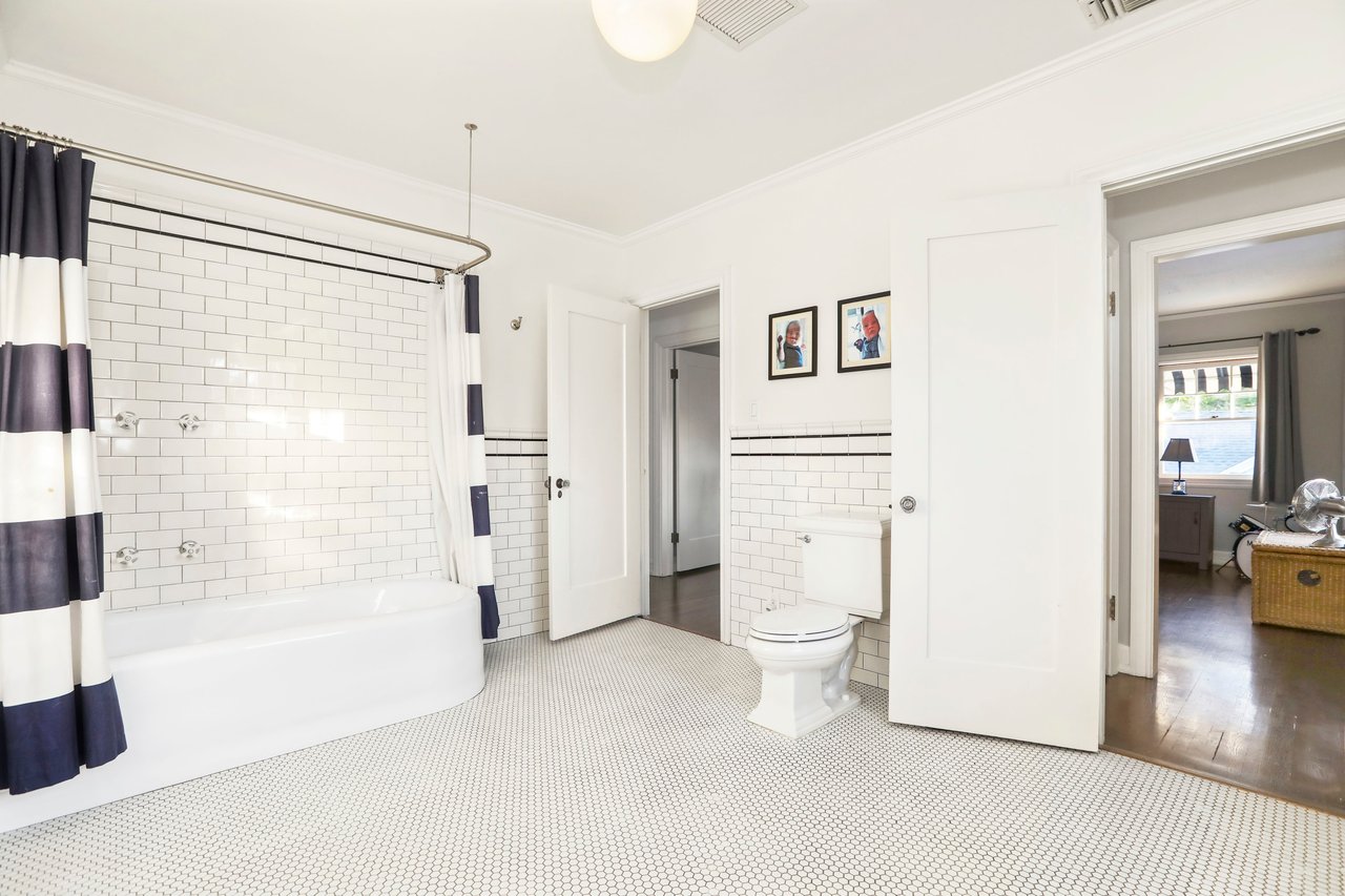 Marshall Wilkinson AIA, architect to the stars. Shrouded by tall hedges behind gates for privacy adjacent to Laughlin Park, this 1920's mini-compound is one of the finest examples of unspoiled Colonial architecture: with details, craftsmanship and a soul that you will only find in a vintage home. Motor court leads to portico entry and massive center hall with grand staircase flooded with sunlight. Chic and classic stylings elevate living room with fireplace, formal dining room and sun/TV room. Updated chef's eat-in kitchen leads to breakfast room, laundry room and full maid's suite. Upstairs are 4 more bedrooms including gorgeous primary suite--and on the third level is a bonus suite. Garage is converted to a stunning family entertainment center plus full guest apartment upstairs. Newer pool and yard with mature landscape are totally private. An experience that lights the spirit and soothes the senses--creating an unforgettable atmosphere of blissful country life in the city.
