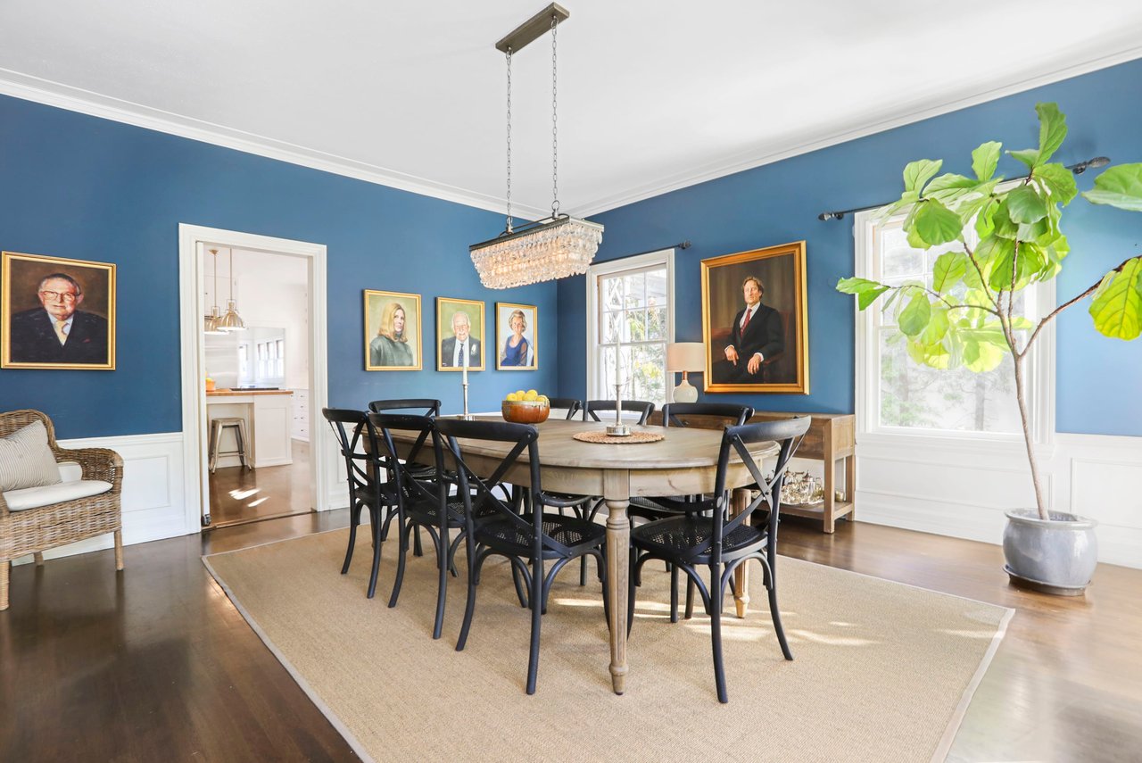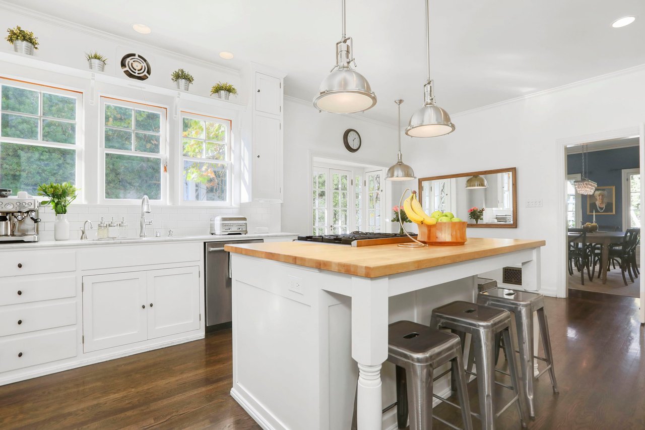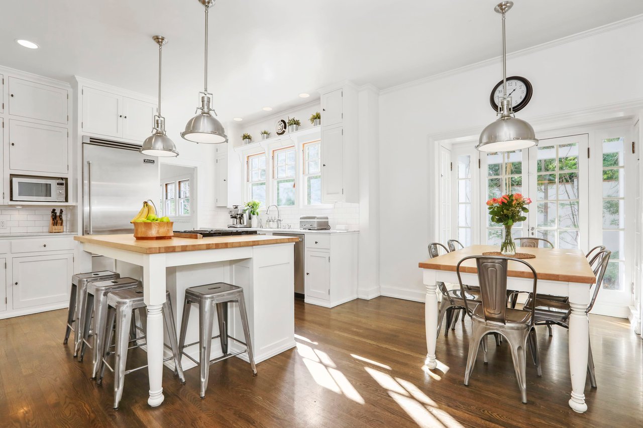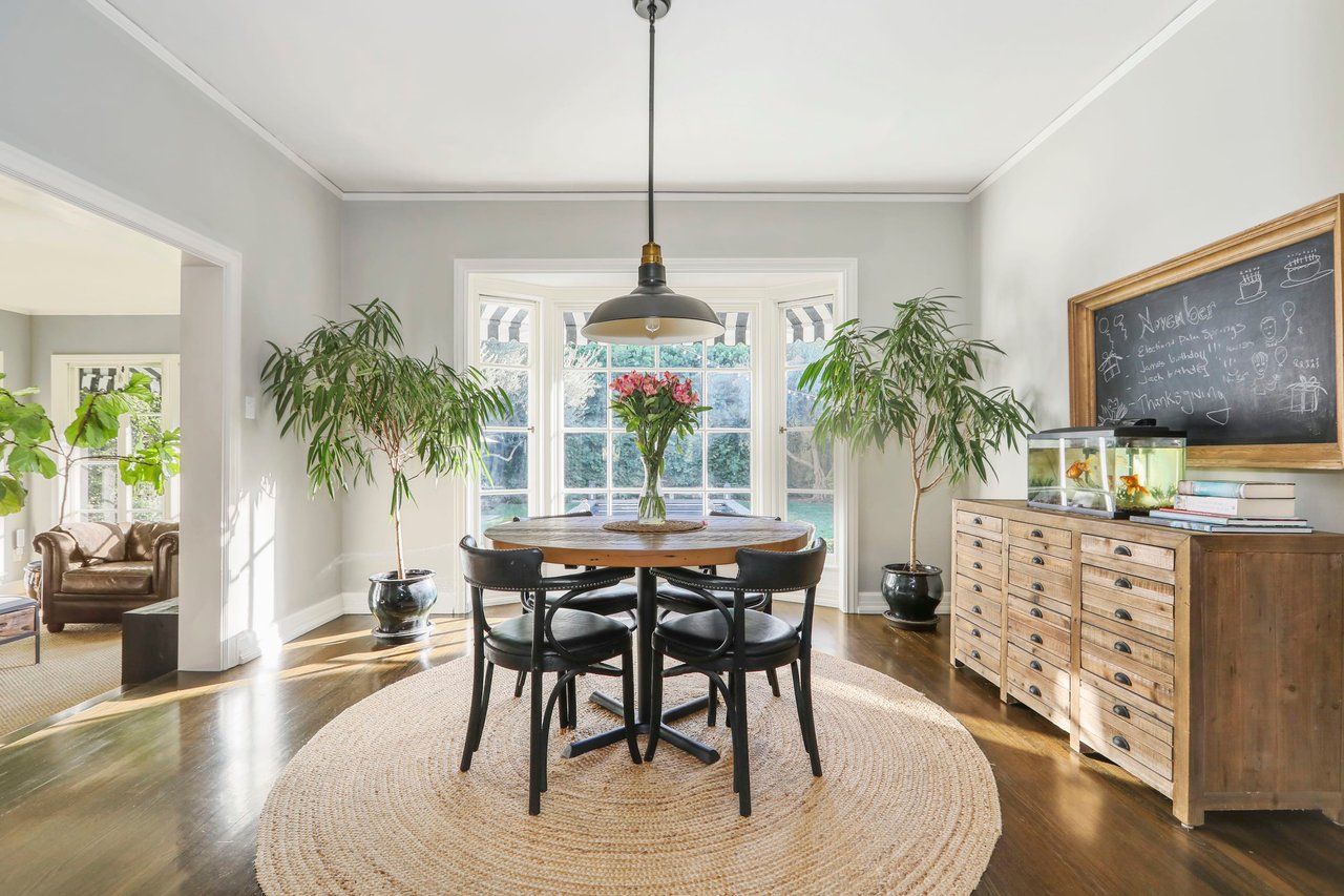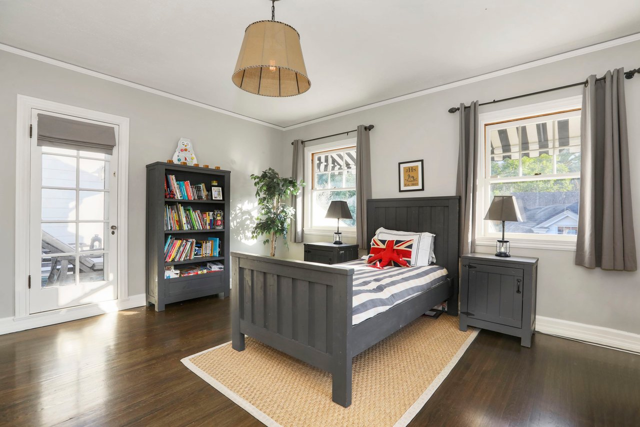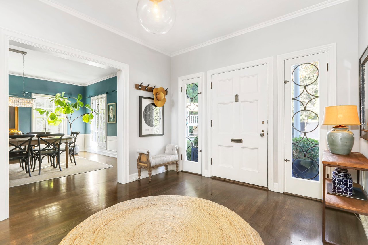 Marshall Wilkinson AIA, architect to the stars. Shrouded by tall hedges behind gates for privacy adjacent to Laughlin Park, this 1920's mini-compound is one of the finest examples of unspoiled Colonial architecture: with details, craftsmanship and a soul that you will only find in a vintage home. Motor court leads to portico entry and massive center hall with grand staircase flooded with sunlight. Chic and classic stylings elevate living room with fireplace, formal dining room and sun/TV room. Updated chef's eat-in kitchen leads to breakfast room, laundry room and full maid's suite. Upstairs are 4 more bedrooms including gorgeous primary suite--and on the third level is a bonus suite. Garage is converted to a stunning family entertainment center plus full guest apartment upstairs. Newer pool and yard with mature landscape are totally private. An experience that lights the spirit and soothes the senses--creating an unforgettable atmosphere of blissful country life in the city.
