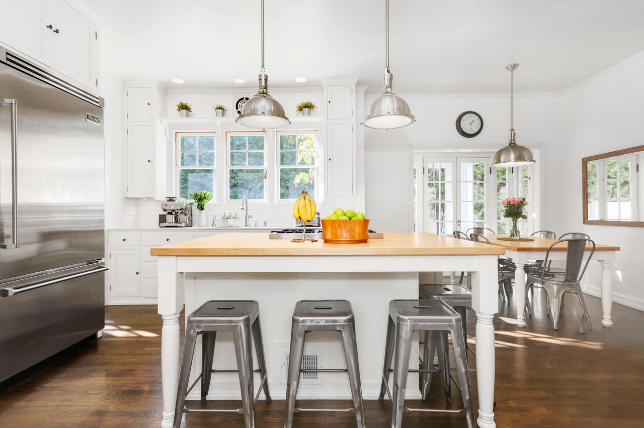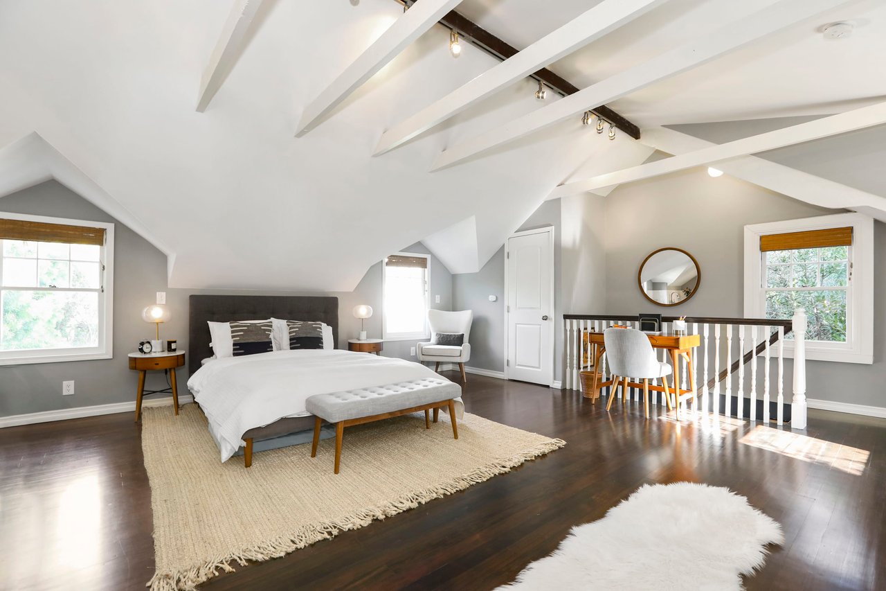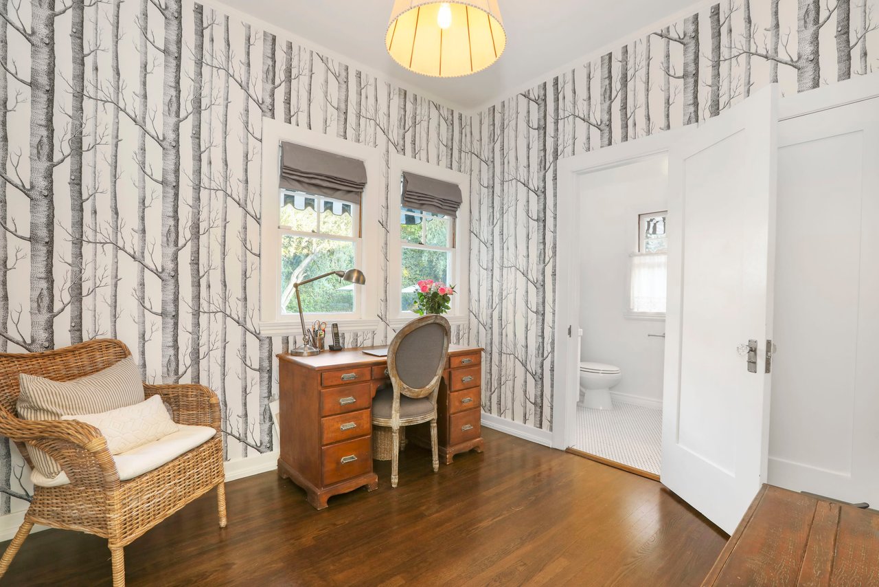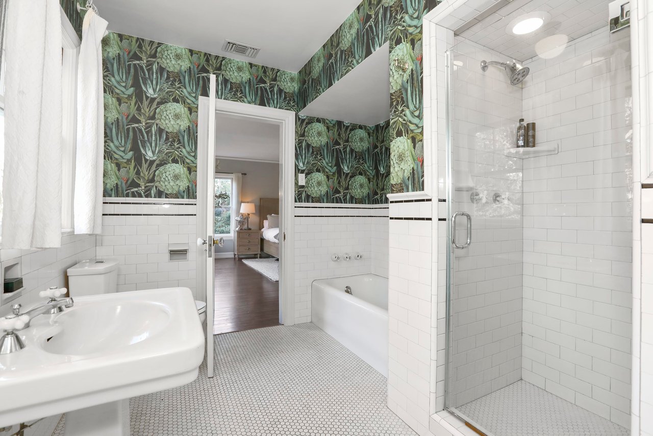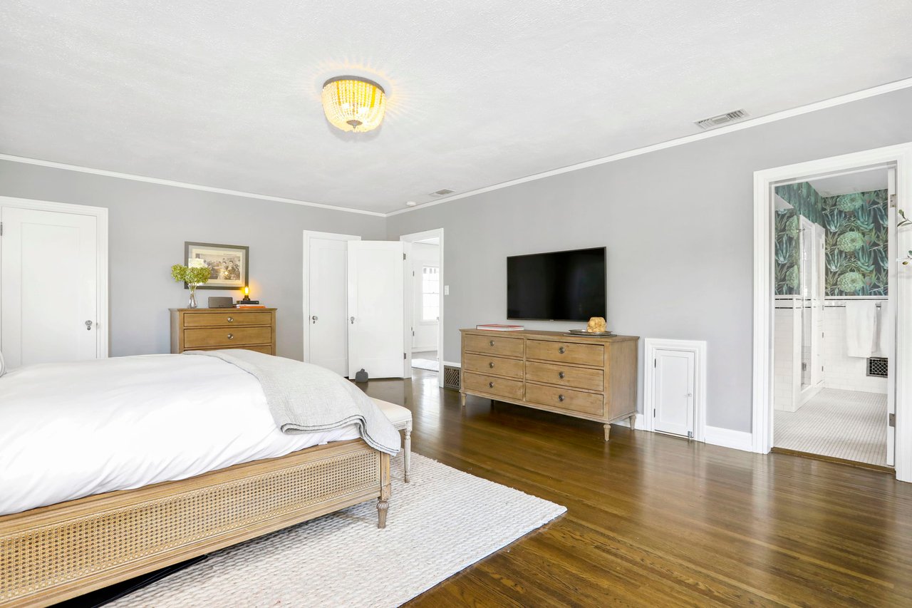 Marshall Wilkinson AIA, architect to the stars. Shrouded by tall hedges behind gates for privacy adjacent to Laughlin Park, this 1920's mini-compound is one of the finest examples of unspoiled Colonial architecture: with details, craftsmanship and a soul that you will only find in a vintage home. Motor court leads to portico entry and massive center hall with grand staircase flooded with sunlight. Chic and classic stylings elevate living room with fireplace, formal dining room and sun/TV room. Updated chef's eat-in kitchen leads to breakfast room, laundry room and full maid's suite. Upstairs are 4 more bedrooms including gorgeous primary suite--and on the third level is a bonus suite. Garage is converted to a stunning family entertainment center plus full guest apartment upstairs. Newer pool and yard with mature landscape are totally private. An experience that lights the spirit and soothes the senses--creating an unforgettable atmosphere of blissful country life in the city.