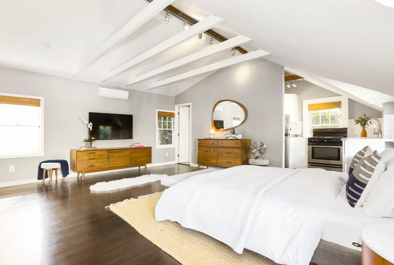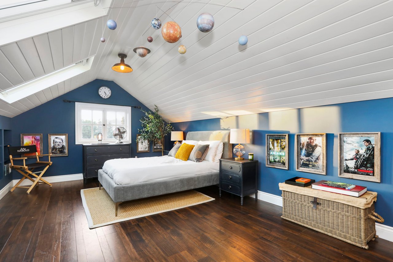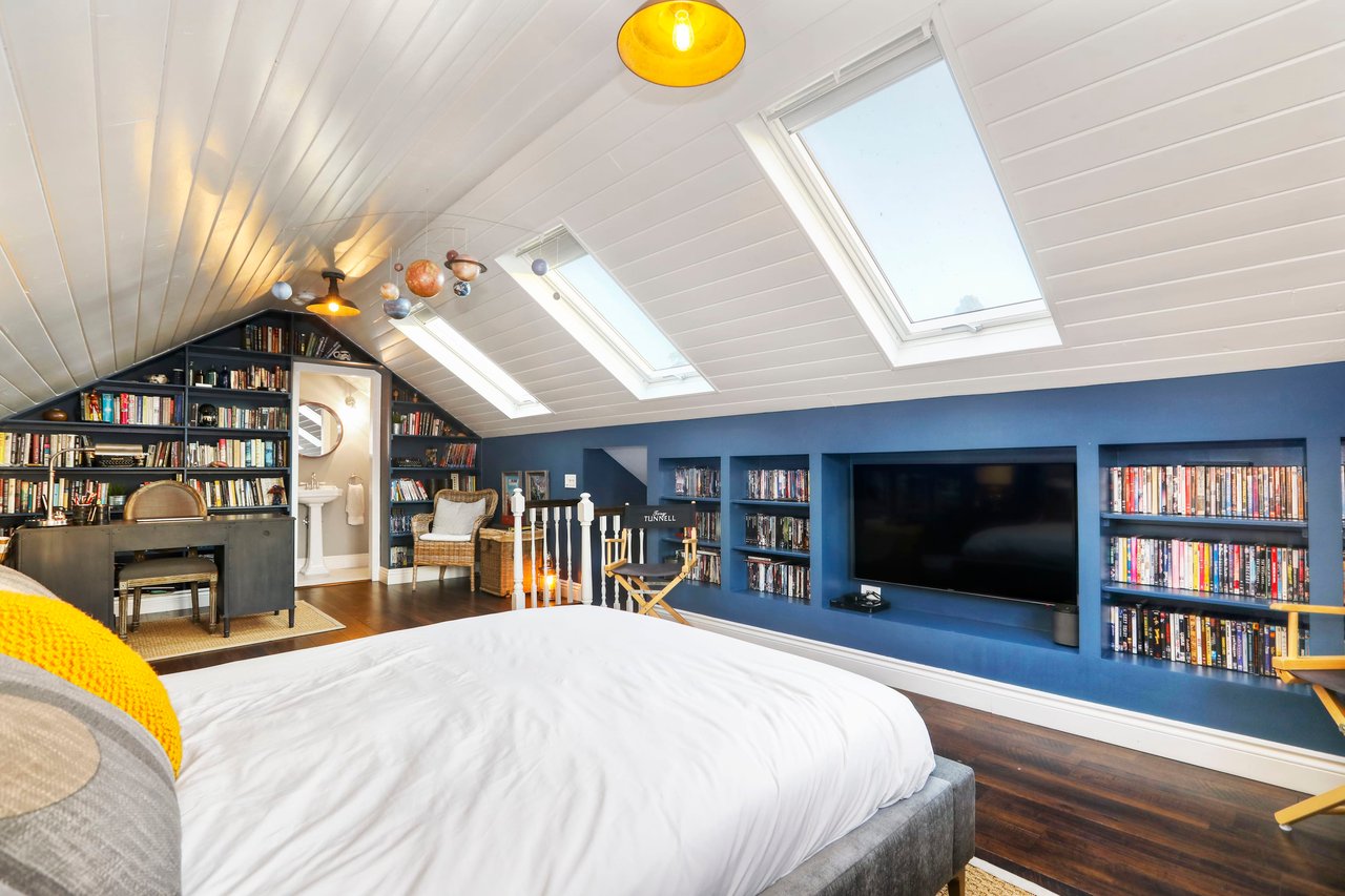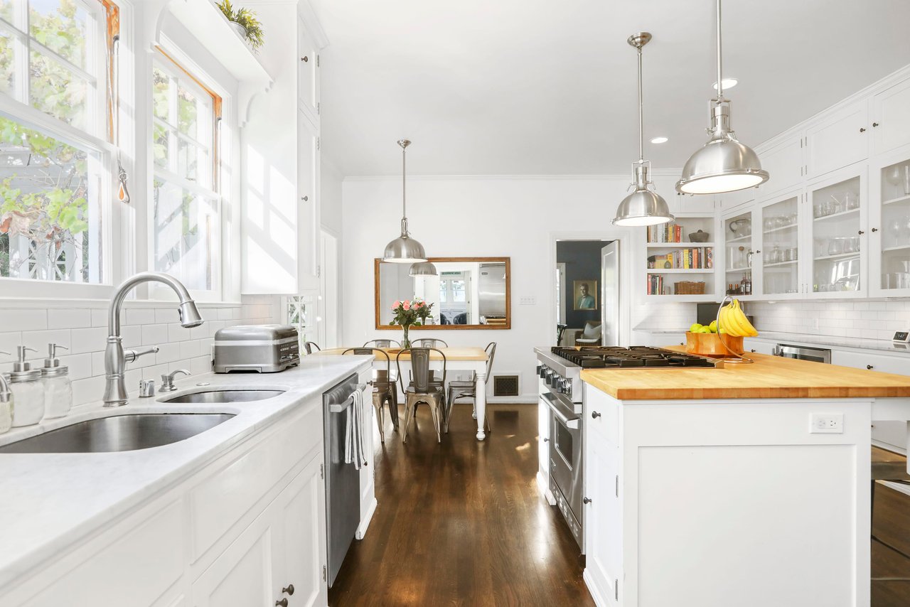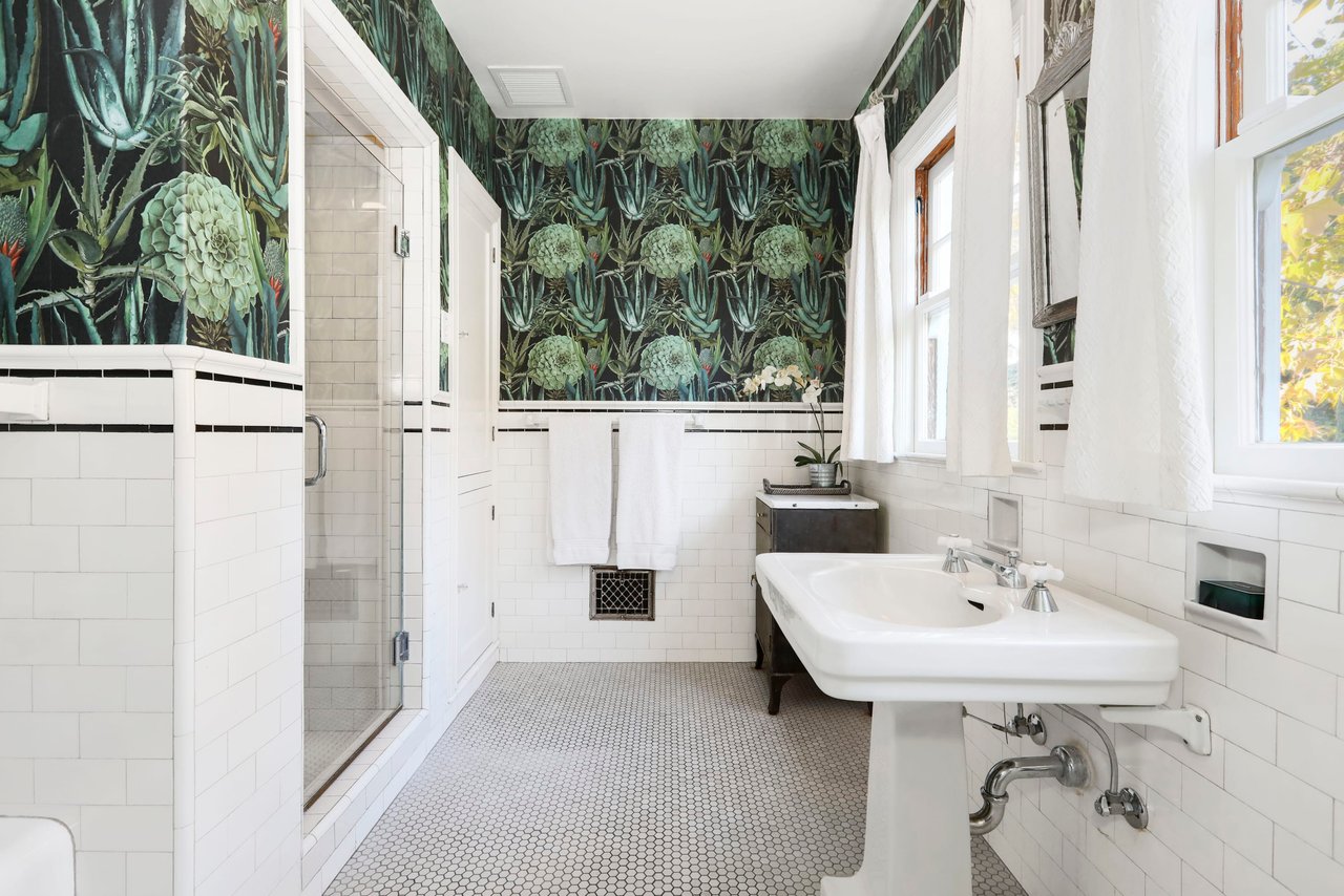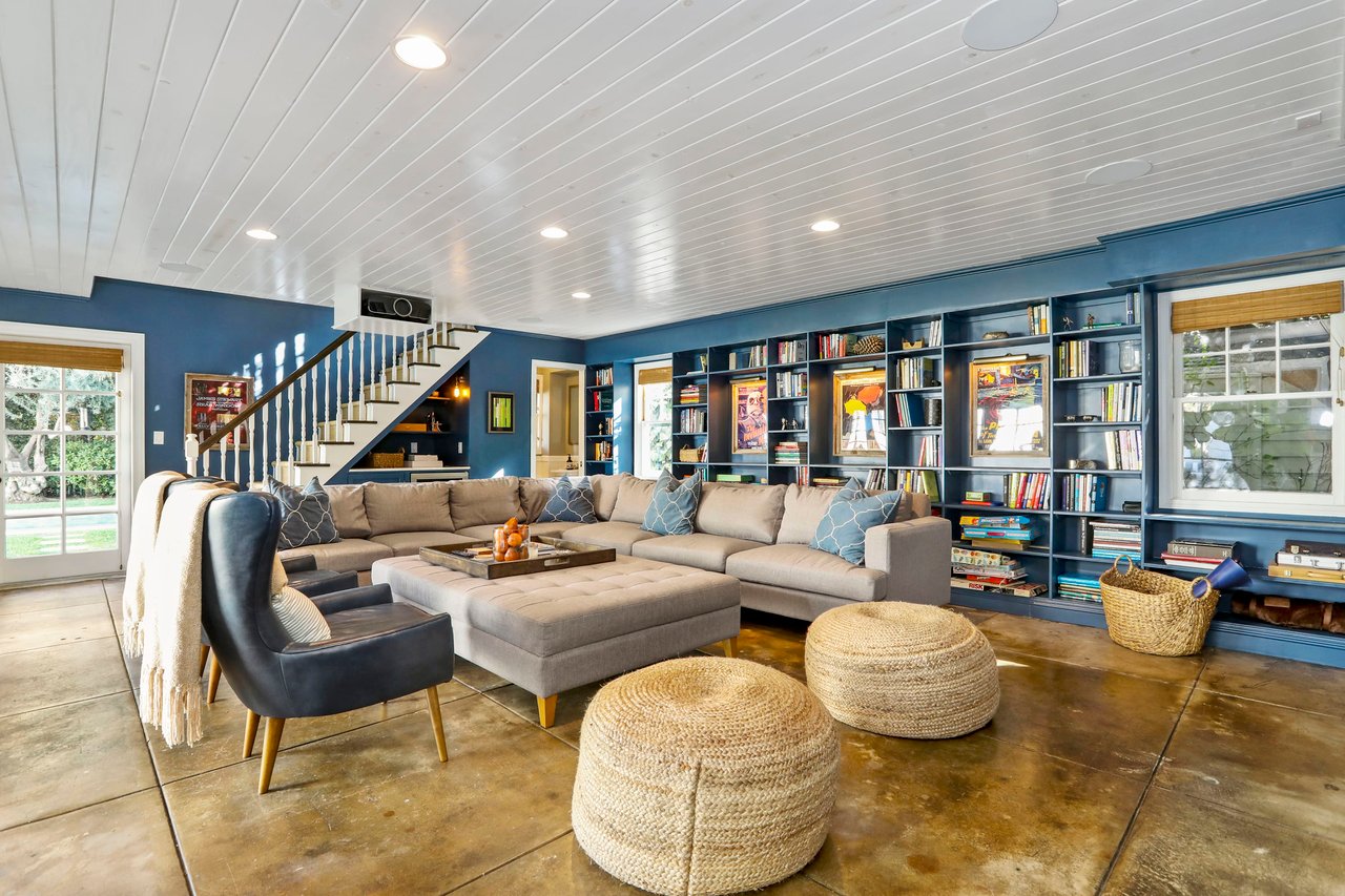 Marshall Wilkinson AIA, architect to the stars. Shrouded by tall hedges behind gates for privacy adjacent to Laughlin Park, this 1920's mini-compound is one of the finest examples of unspoiled Colonial architecture: with details, craftsmanship and a soul that you will only find in a vintage home. Motor court leads to portico entry and massive center hall with grand staircase flooded with sunlight. Chic and classic stylings elevate living room with fireplace, formal dining room and sun/TV room. Updated chef's eat-in kitchen leads to breakfast room, laundry room and full maid's suite. Upstairs are 4 more bedrooms including gorgeous primary suite--and on the third level is a bonus suite. Garage is converted to a stunning family entertainment center plus full guest apartment upstairs. Newer pool and yard with mature landscape are totally private. An experience that lights the spirit and soothes the senses--creating an unforgettable atmosphere of blissful country life in the city.